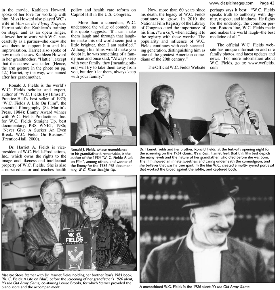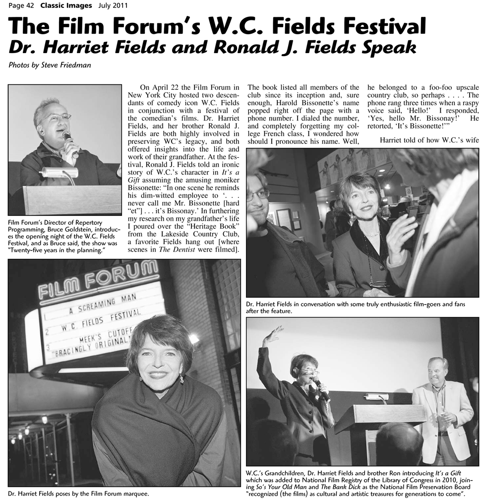 www.classicimages.comDr. Harriet Fields and Ronald J. Fields speak at the opening of the W.C. Fields Festival, Film Forum, New York, April 22, 2011.Dr. Harriet Fields and Ronald J. Fields.